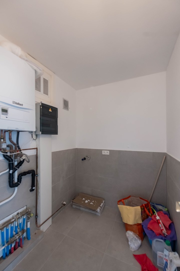 Indeling: inkomhal, woonkamer, open ingerichte keuken, badkamer met inloopdouche, 1 slaapkamer, ruime berging, zuidgericht terras met lateraal zeezicht, kelder en garage in het gebouw.